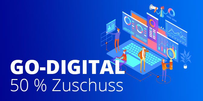 - Ein go-digital-Projekt wird mit bis 50 % Förderung bezuschusst.